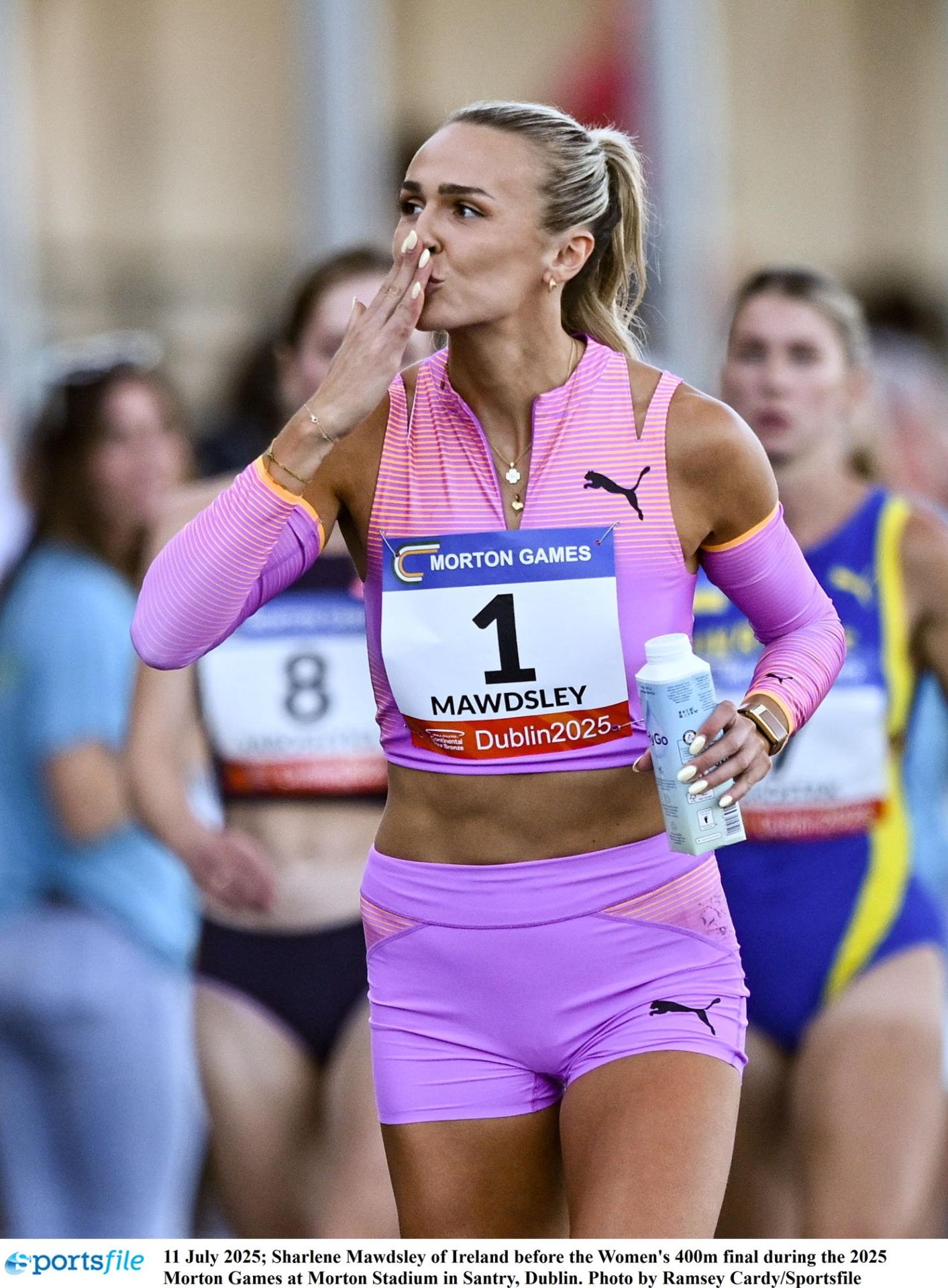 Tipperary Olympian Sharlene Mawdsley blew a kiss to the heavens to her late father Thomas "Tucker" Mawdsley after winning the 400m race at the Morton Games on Friday night in Dublin.