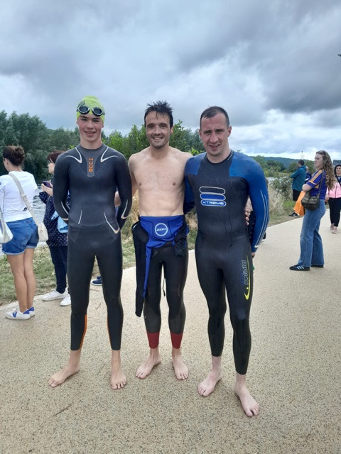 The top three swimmers in the 750m men's race: Finlay McHardy of Tried & Tested Triathlon Club, Dungarvan (3rd) Warren Roche, Waterford (1st) and Joseph Morgan, Fethard (2nd).