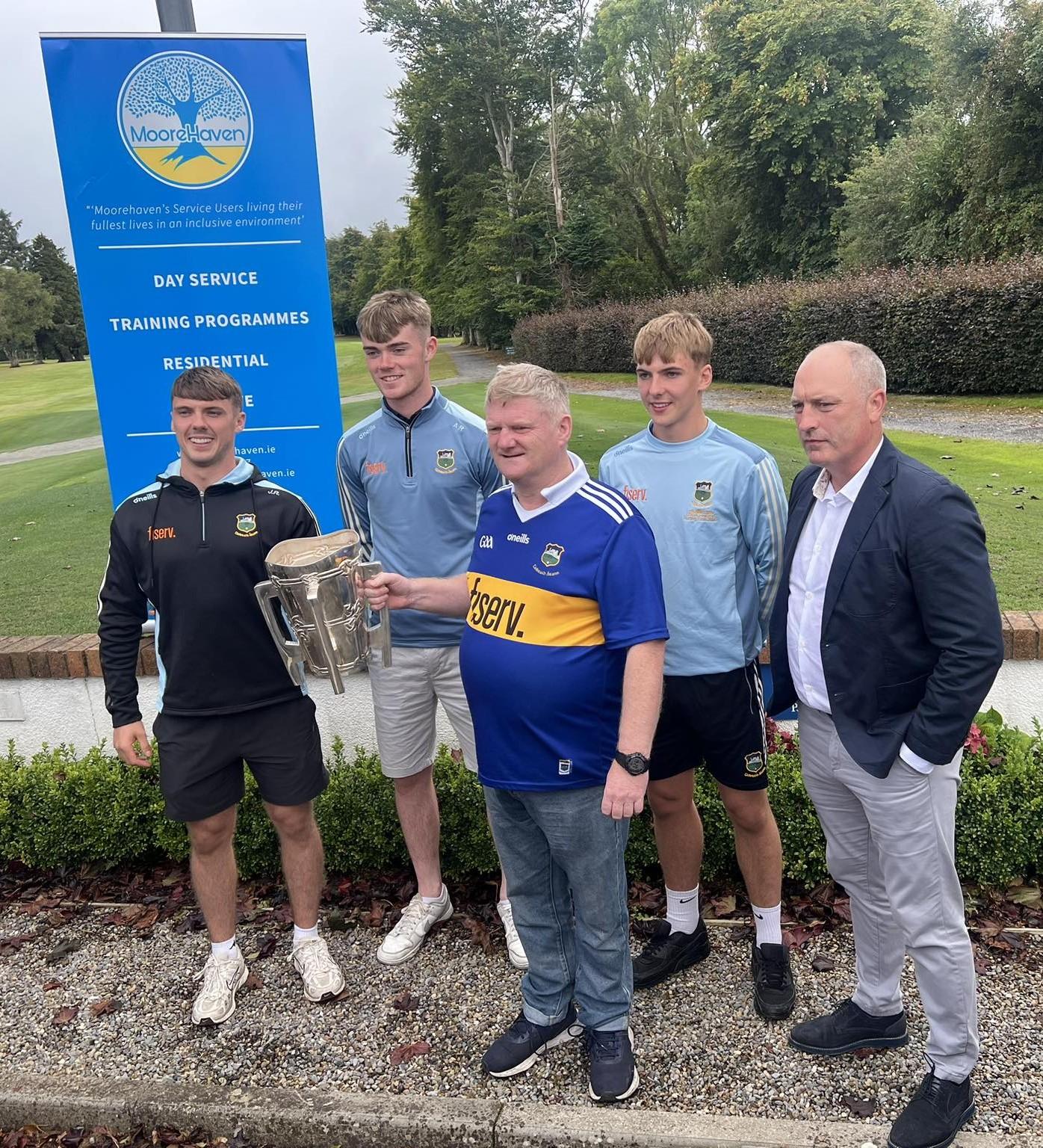 Johnny Ryan, Adam Ryan, David Ryan and Liam Cahill along with Timmy Ryan holding the Liam McCarthy Cup at the Moorehaven Golf Classic