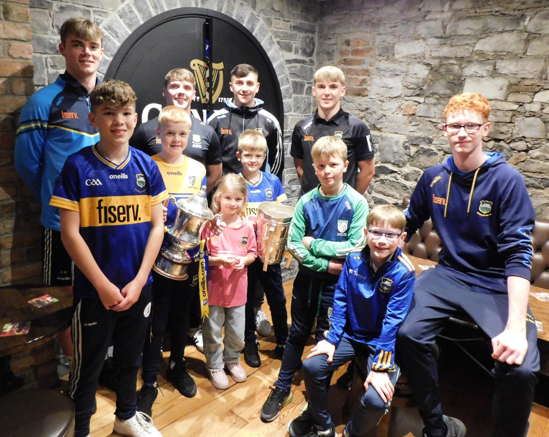 A group of young supporters with Adam Ryan, Johnny Ryan, Robert Doyle and David Ryan.