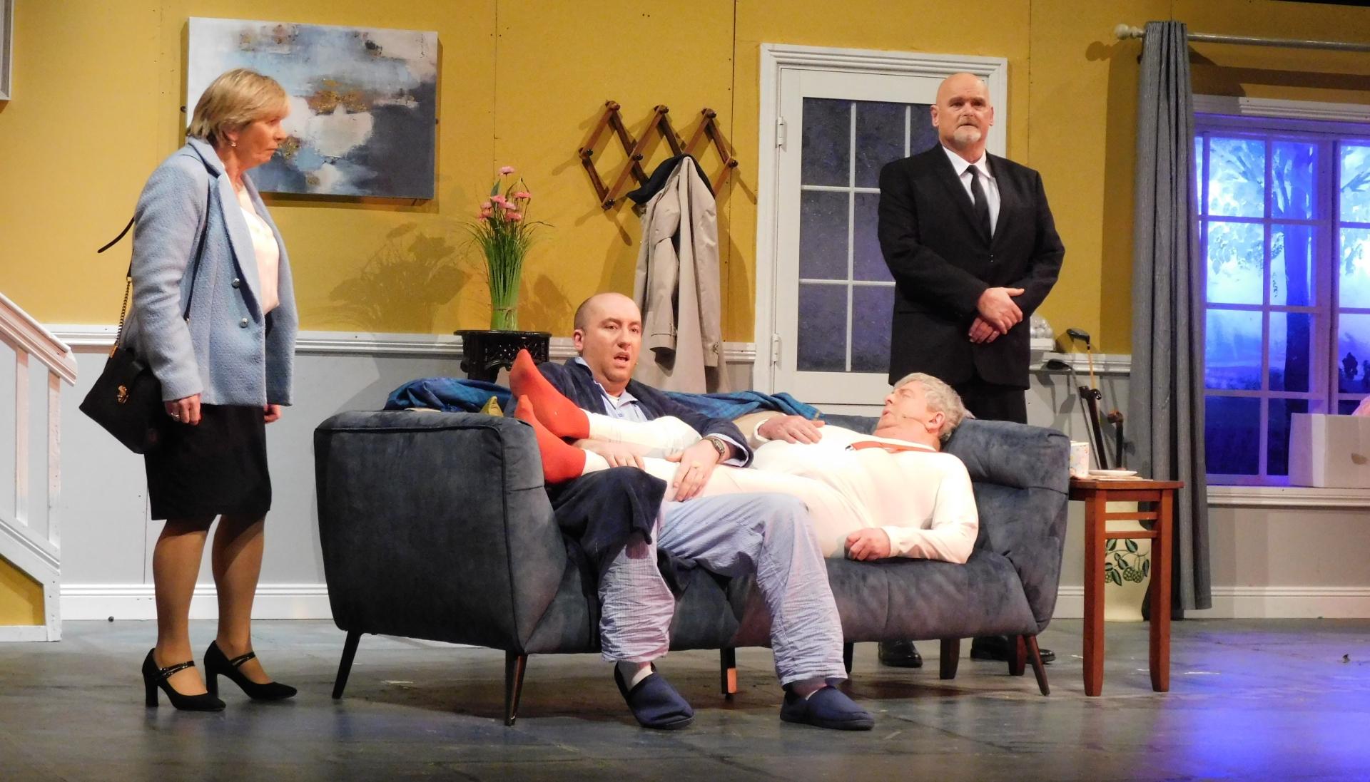 Pictured above: Uncle George (Anthony Flynn) is dead or is he really with Norman Barry (Eoghan Ryan), Sally Mooney (Anne Noonan) and Mr Fogarty (Seamus Curtin) in Cash on Delivery.