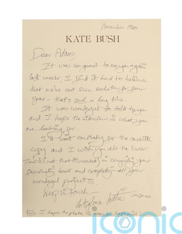 A letter sent by Bush to dancer and mime artist Adam Darius in 1980 is expected to make between £400 and £800, while a letter sent by Madonna to her personal assistant Melissa Crow, describing her stay in New Orleans and upcoming European tour, is expected to make between £500 and £1,000.