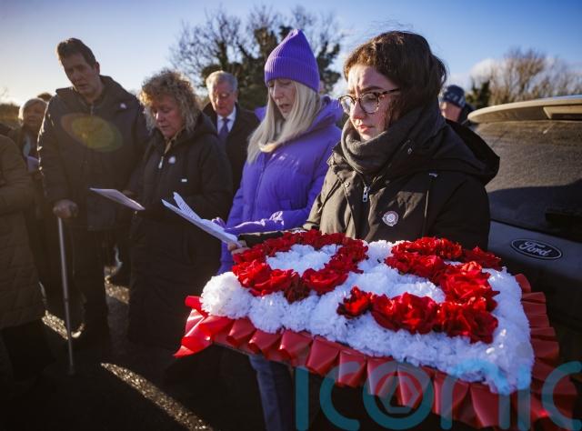 Floral tributes were laid at the memorial at the site of the killings during the remembrance service.