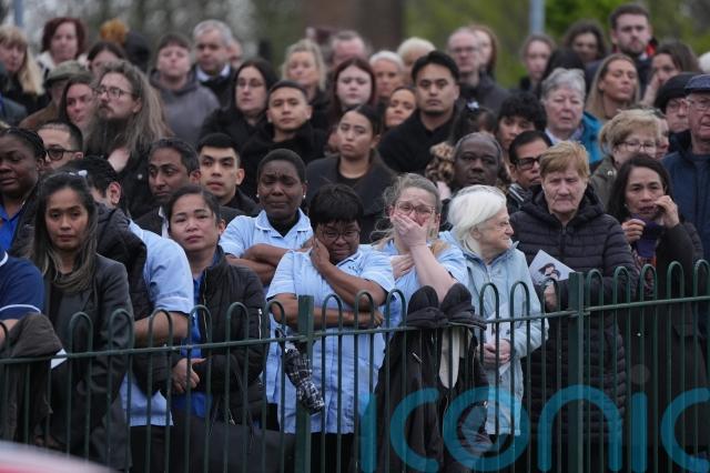 There were emotional scenes as medical workers formed a guard of honour in their uniforms while the coffins were brought from the chapel.