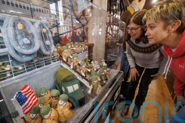 Claire Holmes and Mavis Fleming said their group the Knitwits were asked to create a piece showing the arrival of American troops in Belfast.
