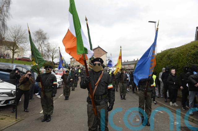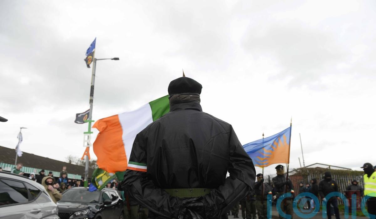 There was a colour party of people wearing face coverings, sunglasses and paramilitary-style dress, carrying the Irish flag and republican flags.