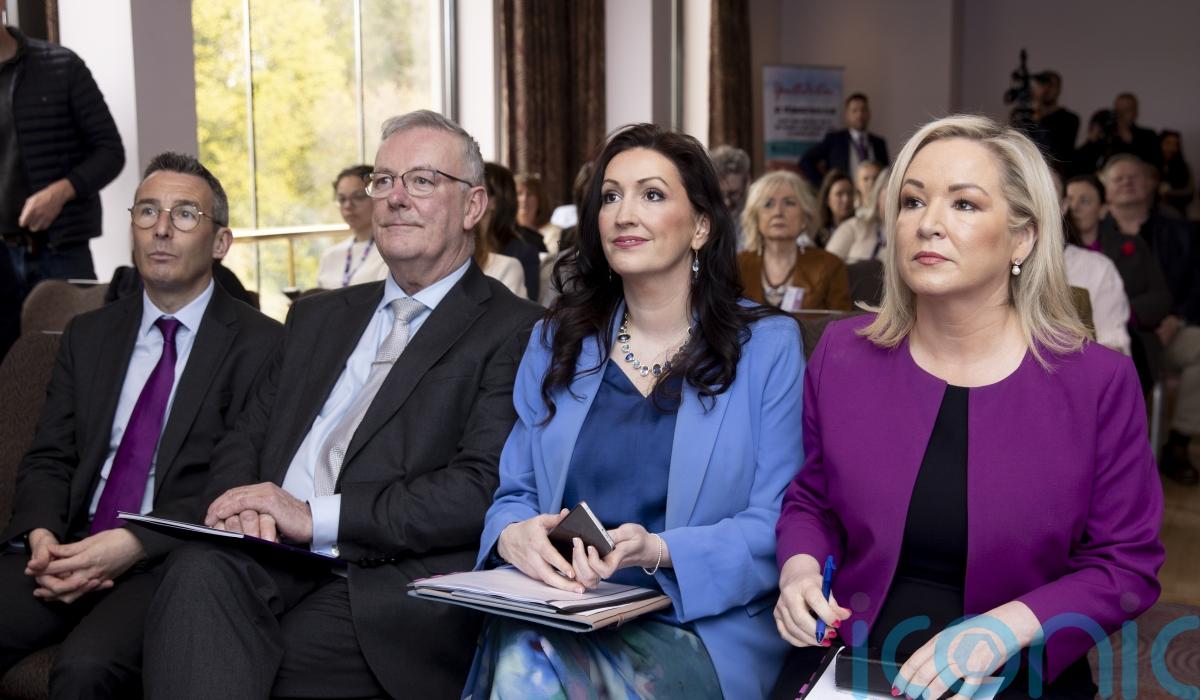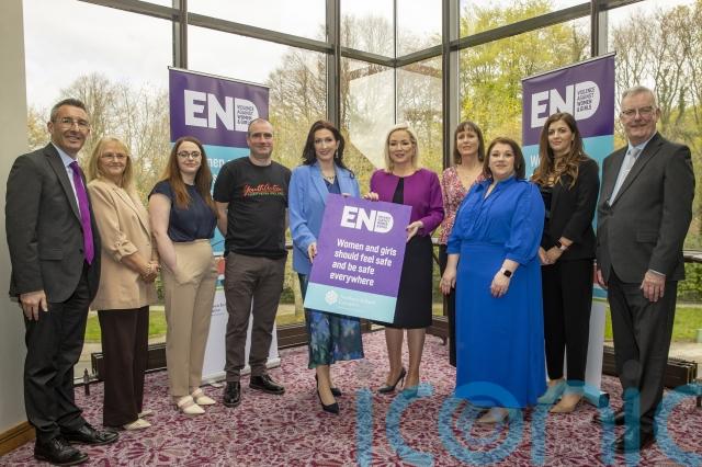 The Stormont leaders were attending the launch of the seven-year strategy’s second delivery plan on Tuesday – an event that heard testimony from organisations involved in work on the ground, such as in schools and youth groups, to challenge misogynist attitudes and tackle gender-based violence, abuse and harm in Northern Ireland.