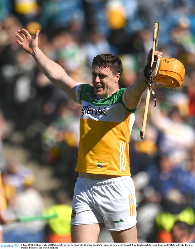 Cillian Kiely - Cillian Kiely was one one of Offaly's heroes in the Joe McDonagh Cup campaign. He was certainly in the three best, most influential players, a true giant and leader at the heart of the defence. He tipped over into empty here with Shane Barrett cutting loose in the first half, as he scored 1-3 while he looked to be carrying a leg and he got involved in a small bit of argy-bargy stuff. He was moved off him and then into attack before half time where he really dug in for a while at full forward in the second half, trying to bring Offaly back into it. He was replaced in the 63rd minute but can hold his head very high. He is one of Offaly's older players at this stage and the heavy schedule of games eventually took its toll but he has had a fantastic year. Rating – 6.