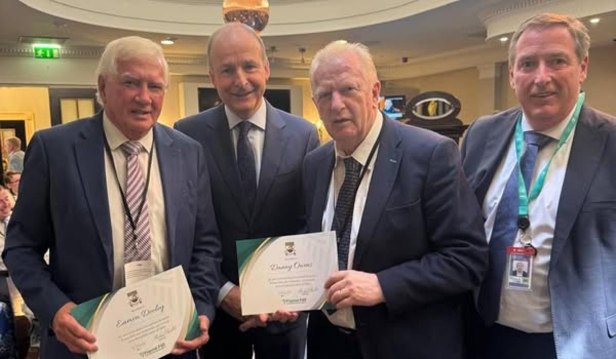 KILLOUGHEY'S Danny Owens and Ferbane's Eamon Dooley – two retired Fianna Fail county councillors – were honoured by Taoiseach Michéal Martin at a function in Leinster House on Wednesday last.