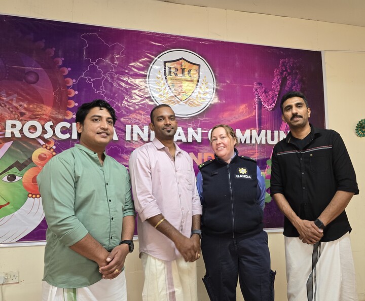 Midhun Molly Mattews, Binoj George, Roscrea Community Garda Kay Gaynor and Febinlal Vellayat during the Onam celebrations