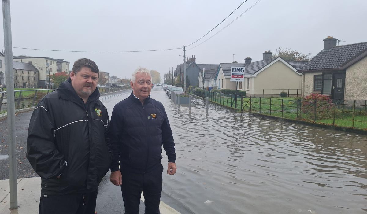 Cllr Shane Murray and Cllr Declan Harvey at the flood earlier