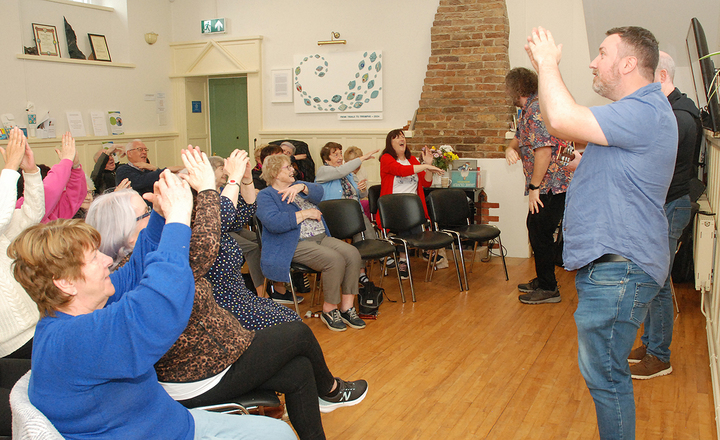 Pictured above is Colin Kenny getting a great reaction from all in attendance at Age Friendly Roscrea's event to mark Positive Ageing Week. Photos: PJ Wright