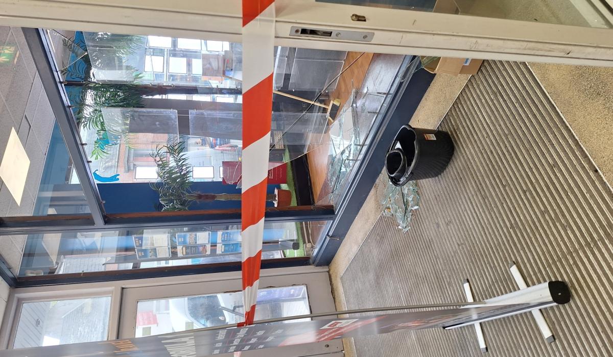 AN area around a retail unit in Tullamore is currently cordoned off following a window being smashed at lunchtime.