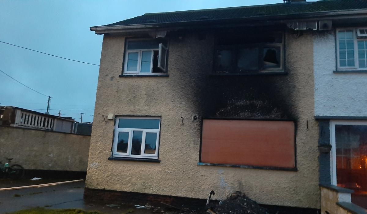 The burned out remains of the house in Edenderry where a woman and a young child died on Saturday night
