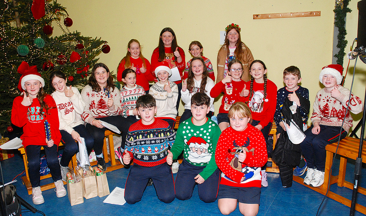 Pictured above are Dromakeenan NS Choir singing christmas Carols at the St Cronan’s Christmas Fair. Photo: PJ Wright
