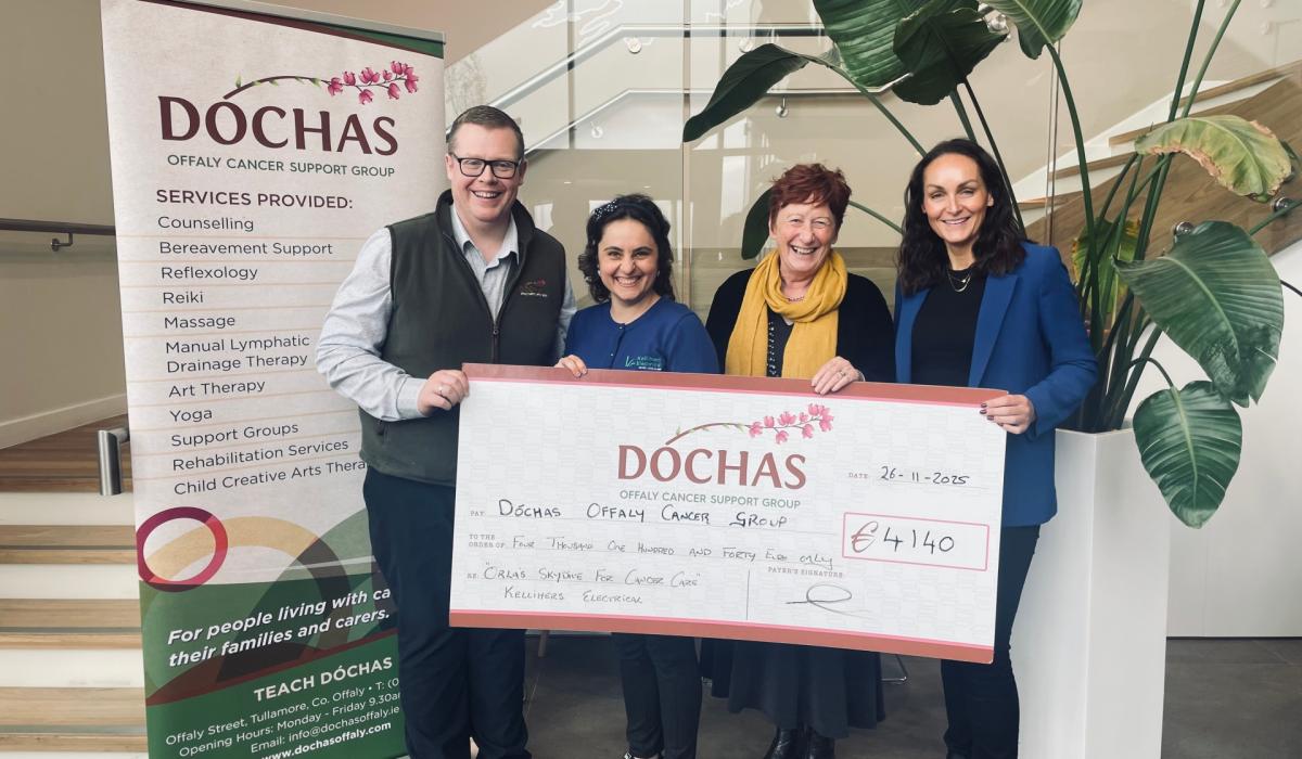 Dóchas Offaly Cancer Support Group were delighted to receive a total of €4,140 from a recent fundraising initiative led by Orla Matthews, CEO of Rexel Ireland (Kellihers Electrical).