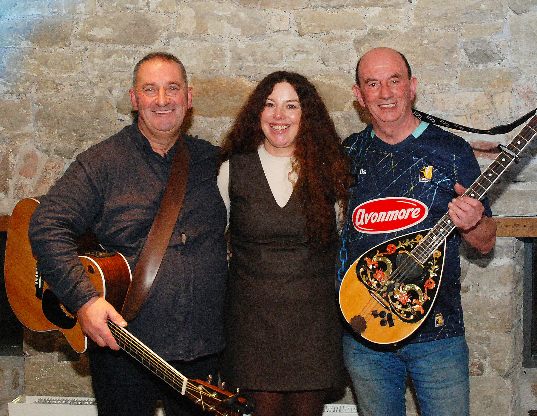 Pictured above at the last Black Mills Session of the year are Tommy McDonald and Jimmy Quinlan with Pamela Aitken, who organised the Sessions for Roscrea Heritage Society. Photo: PJ Wright
