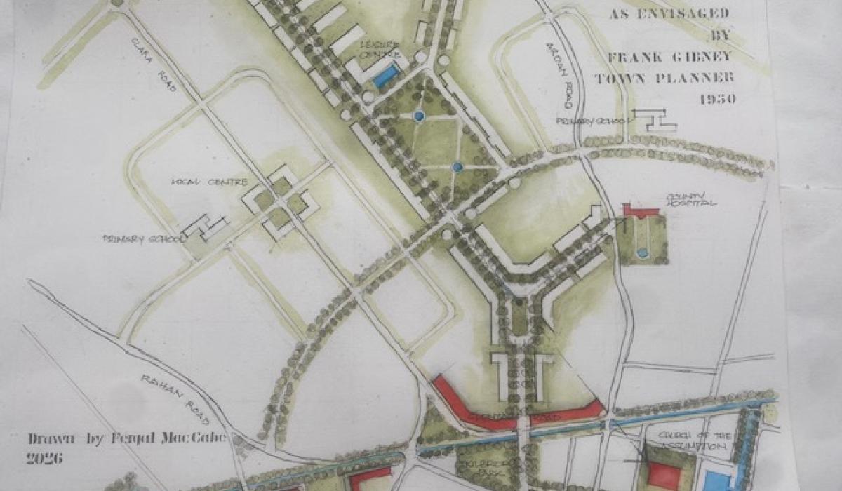 In the 1950s the visionary architect and town planner Frank Gibney was commissioned to provide a plan for Tullamore. His brief was to identify sites and layouts for local authority housing schemes and to suggest a line for a future bypass.