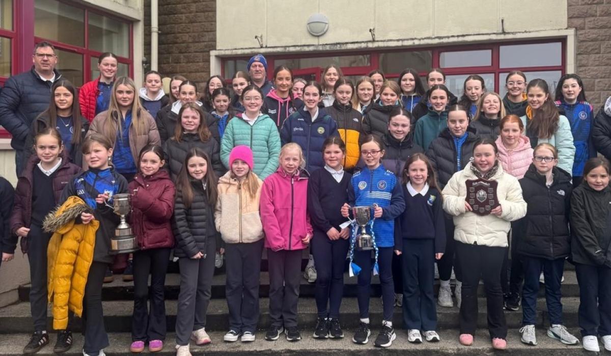 Ahead of the 2026 playing season getting underway member sof Tullamore Camogie Club visited the local primary schools to display the silverware won by the club during the 2025 season – u14 A & C championships, Minor A championship, Junior & Senior Cup competitions.