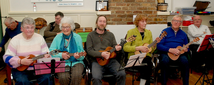New Members of the Ukulele Group Marie Maher, Julie Thompson, Fionn Stapleton, Mary Curtin Delaney and George McManus. Photo: PJ Wright