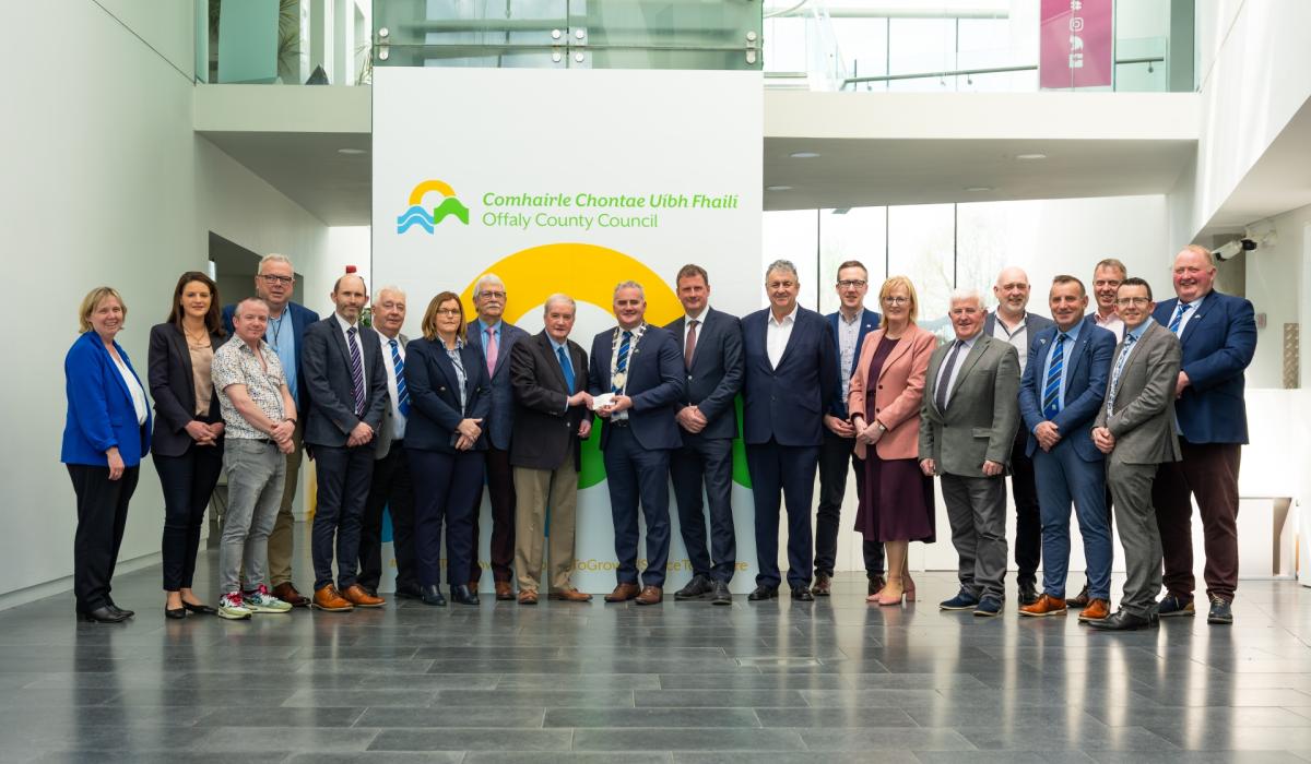 Elected Members and Management of Offaly County Council joined members of TCAC as TCAC Chairperson Desmond Doyle presented the final cheque to Cathaoirleach Cllr John Leahy and CE Eoghan Ryan