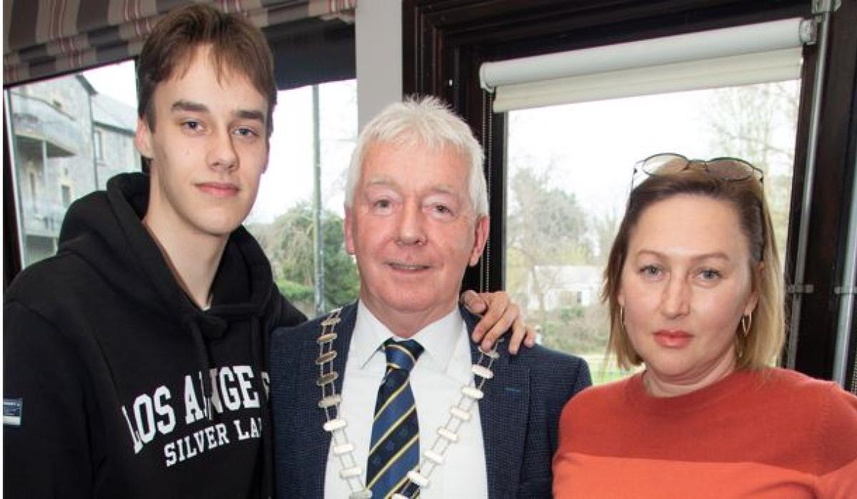 Ukrainian refugees being welcomed to Tullamore by the Cathaoirleach of Offaly County Council, Cllr Declan Harvey