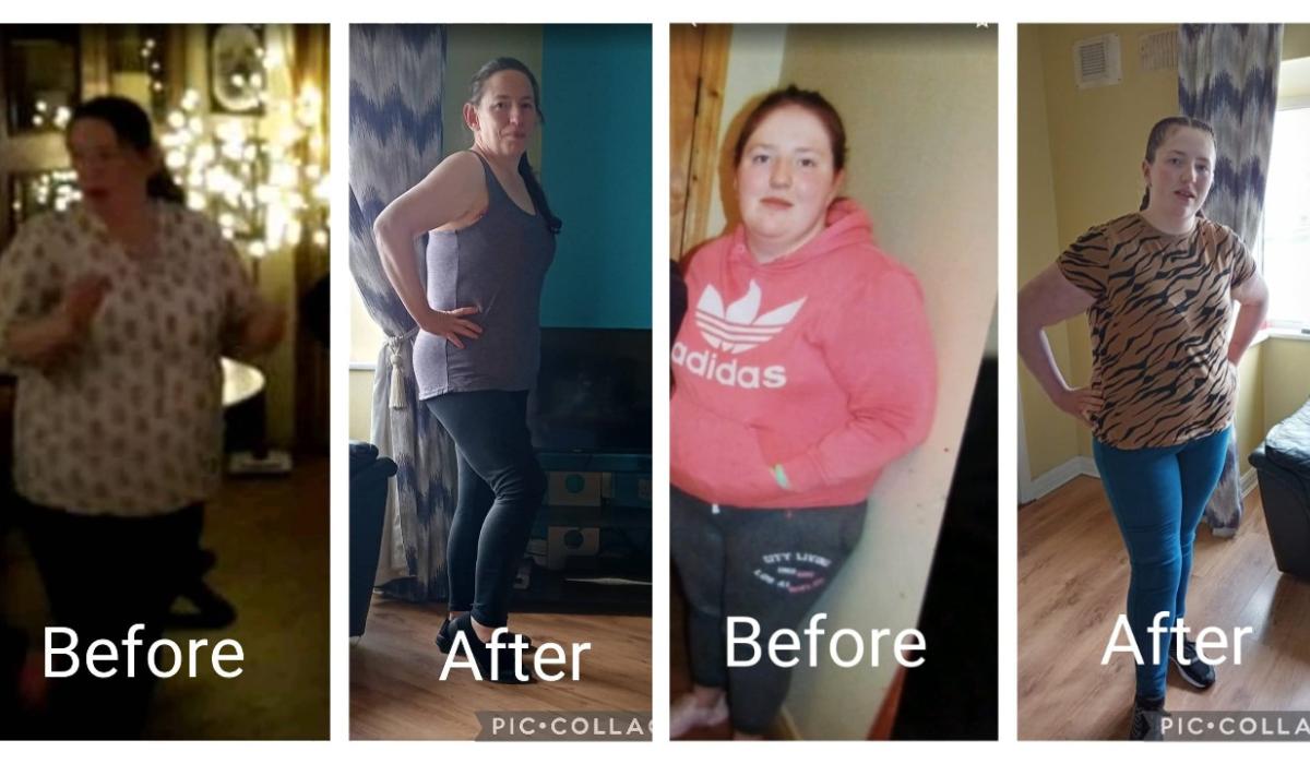 Longford mother Laura Monaghan, 45 (pictures on left), and her daughter Jessica, 19 (right), pictured before and after their weight loss