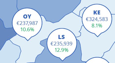 The average price of a home in the county is now €238,000, 97pc above its lowest point.