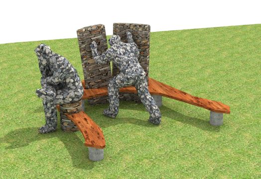 The Offaly man trained in welding so he could craft the steel frames which represent the two men, having first made timber mock-ups of the shapes. One of the brothers is depicted in deep thought while the other appears to be using all his force against a stone wall.