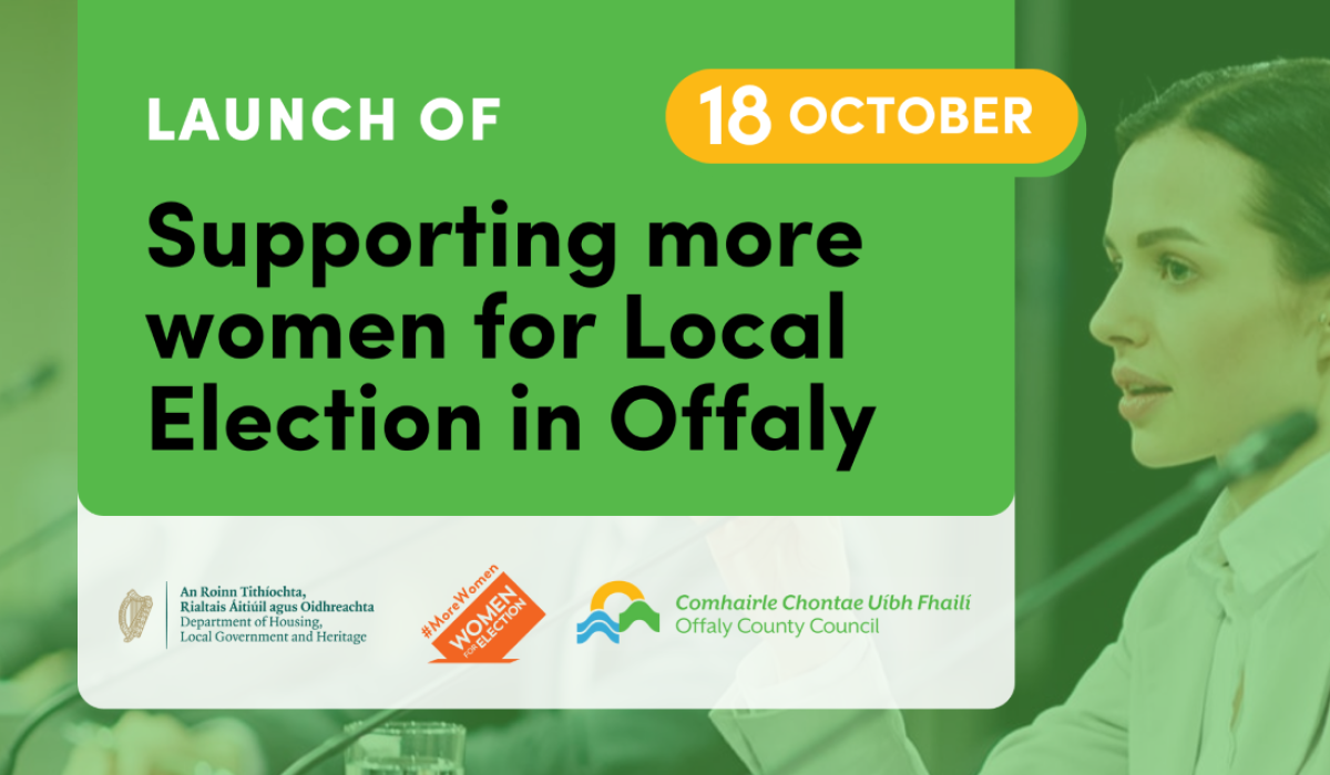 Caitríona Gleeson, CEO of Women for Election said: “Currently the representation of female Councillors in Offaly stands at just 5%. We are delighted to be working with Offaly County Council on this initiative. We invite members of the community to register and join us on the 18th of October to officially launch this important and timely programme.!”