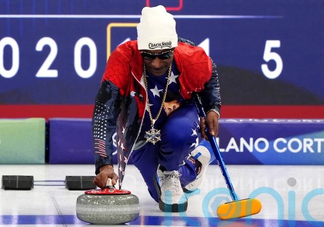 Snoop carried the Olympic flame earlier in the week, having also been a torchbearer in Paris two years ago, and took to the ice himself to try sweeping a stone.