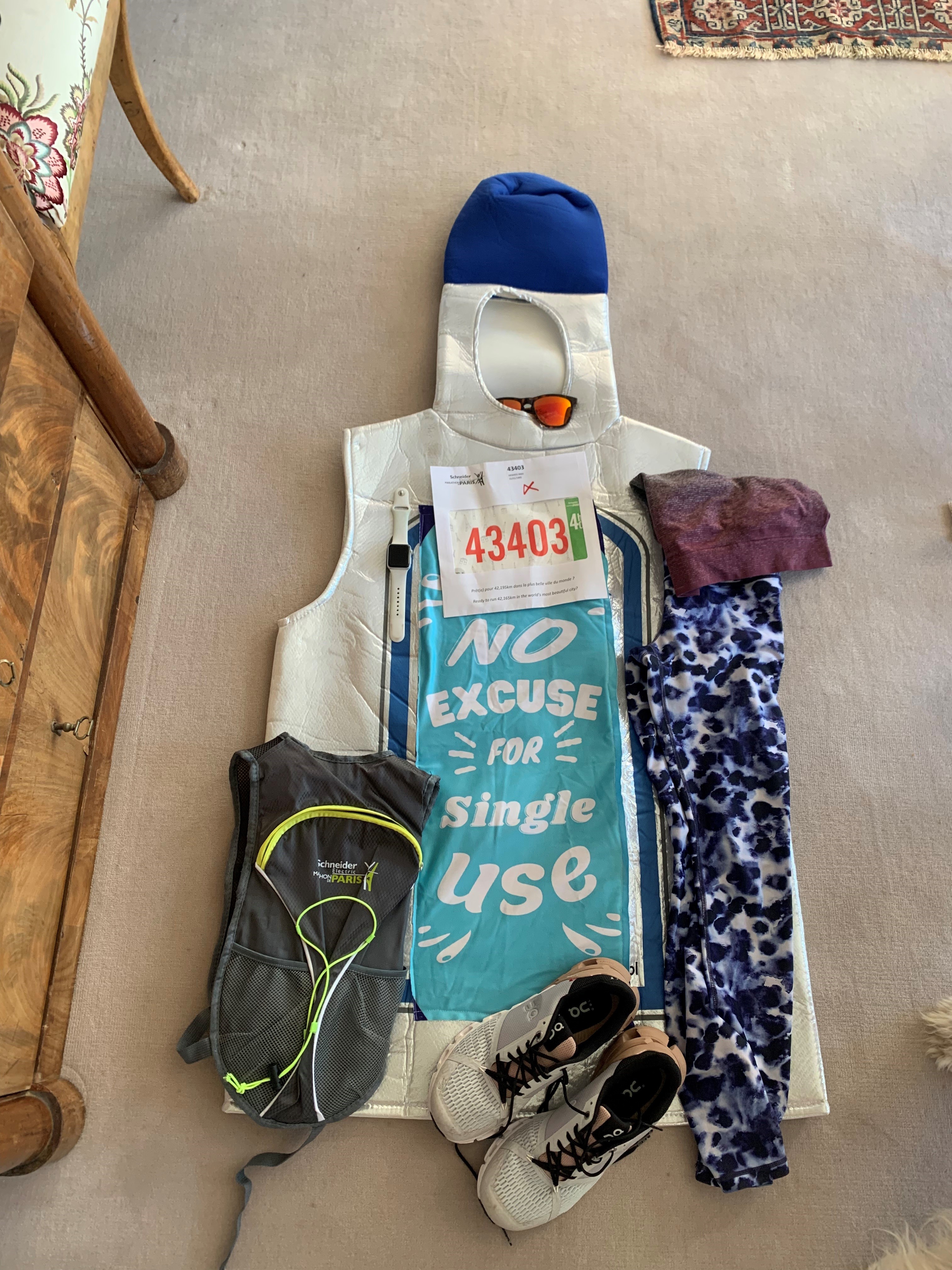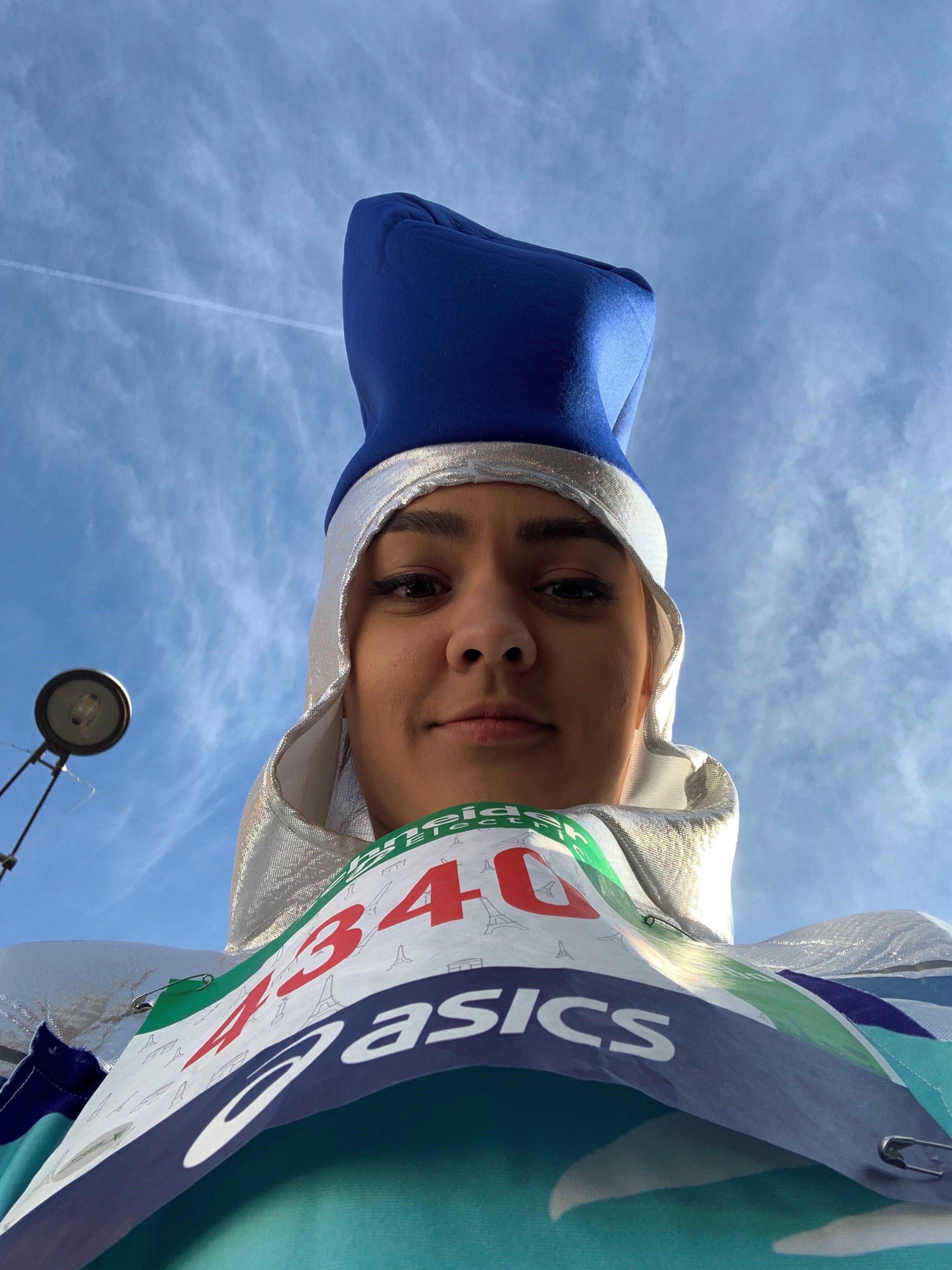 She continued to wear her costume throughout training and still does to this day, but she had a shock when she got to Paris’s start line – she was the only one wearing a costume.