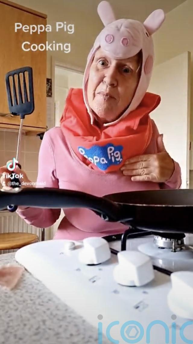 A childminder in her 60s thinks her “childish sense of humour” might have helped her accidentally become TikTok famous after posting “silly videos” about how different household items would walk – and causing outrage by dressing up as kids’ cartoon character Peppa Pig to cook bacon.
