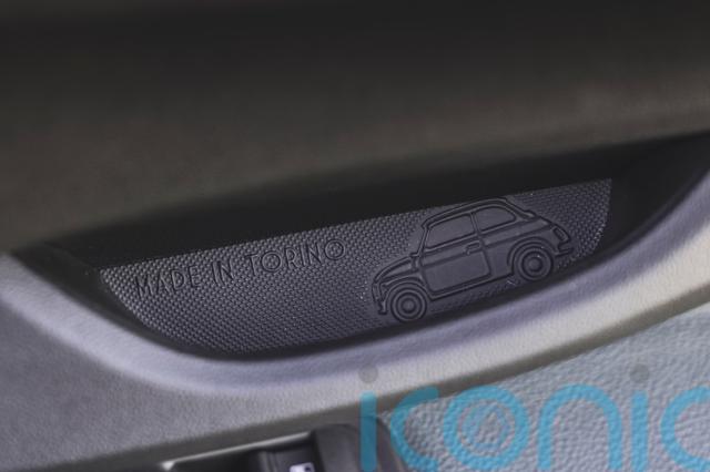 Some cool little touches are the ‘Made in Torino’ rubber mats with the original Fiat 500 pictured in the door pulls and the little storage cut out in the centre of the dashboard, which features an outline of Turin.
