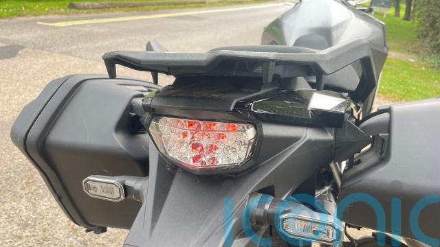 At the rear, there’s a well-sized light which does help to make you more visible, though I’m starting to think a little bit more about how reflective my gear is when I head out on the Suzuki.