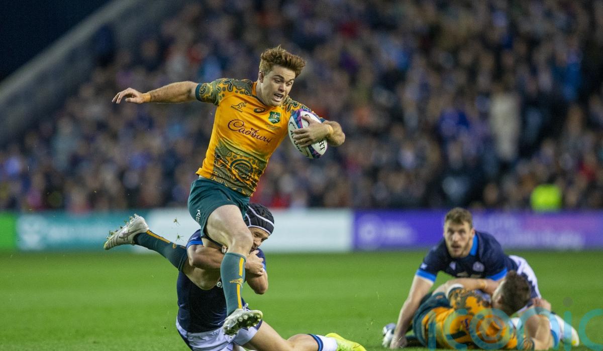 But, three minutes after the restart, the Scots got themselves back in front when Kinghorn, under scrutiny as a result of taking Russell’s place, seized on a loose ball in his own half, kicked it in behind the Wallabies defence and raced on to it himself before kicking it forward again, collecting it just in front of the line and bounding gleefully over for a magnificent solo touchdown.