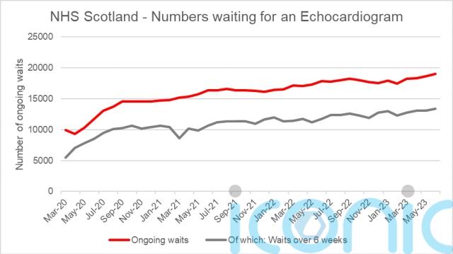 Freedom of Information data shows that between June 2020 to June 2023 the number of people waiting for an echocardiogram increased from 11,745 to 19,054.