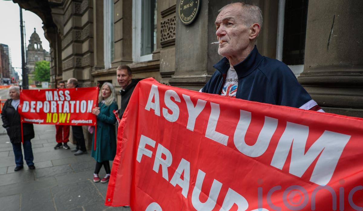 Protesters holding “mass deportation now” signs gathered in Glasgow as John Swinney held a special cross-party summit to tackle the far right.
