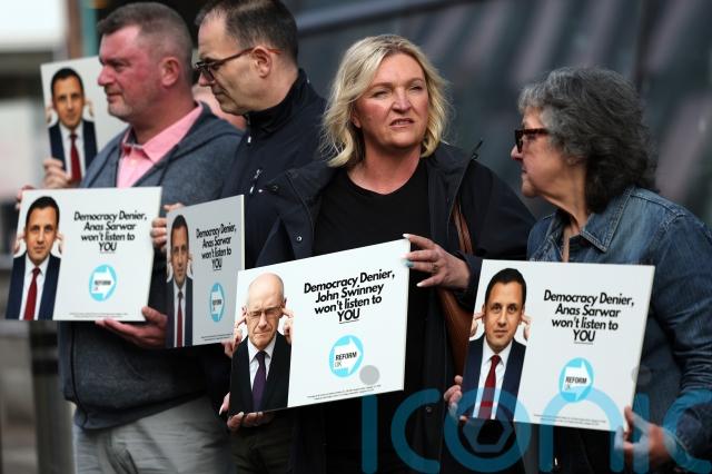 Reform UK protesters also gathered outside the building in the city centre, holding pictures of Scottish Labour leader Anas Sarwar and the First Minister above the words “democracy denier”.