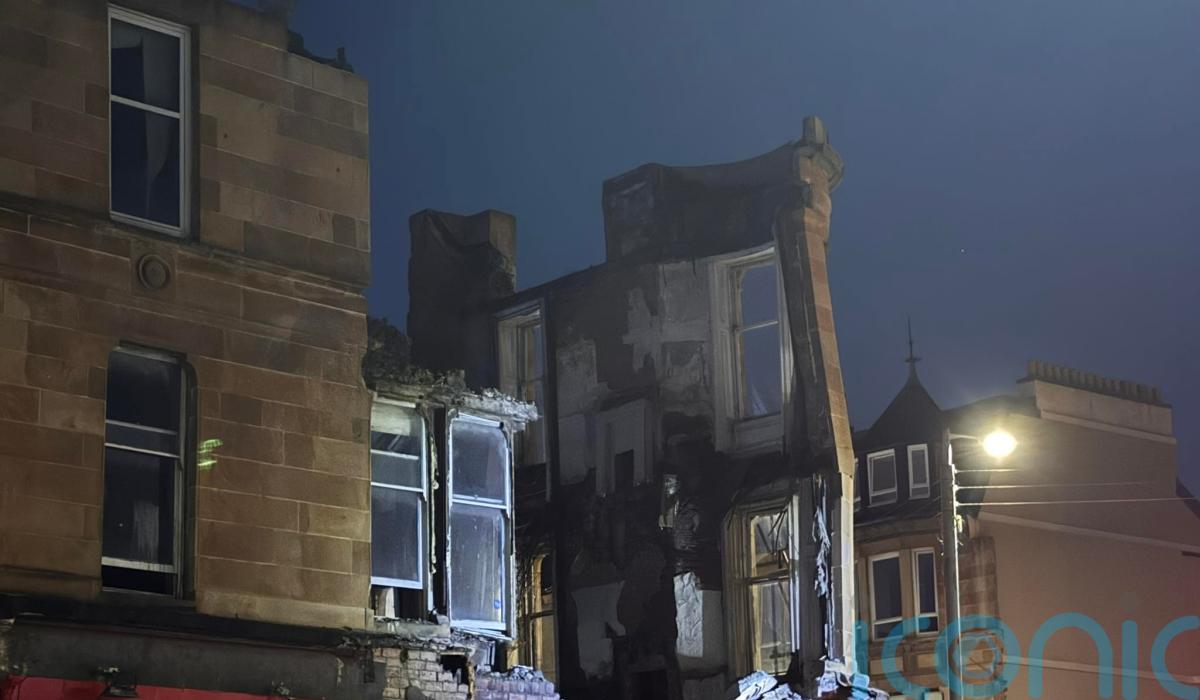 Homes have been evacuated and roads closed after a fire-damaged tenement building collapsed in Glasgow overnight.
