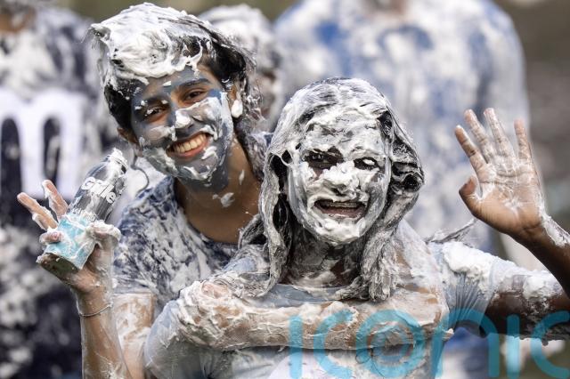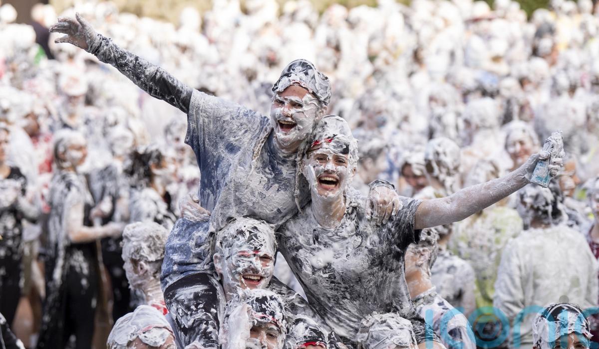 Students in St Andrews threw shaving foam at each other in an annual tradition for first-year newcomers at the Fife university.