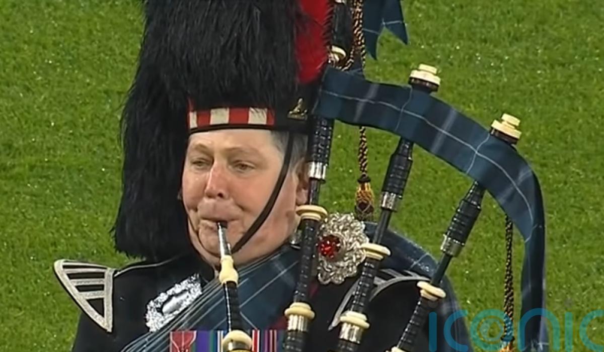Major Stevie Small, 60, performance director at the Royal Edinburgh Military Tattoo, played Flower Of Scotland ahead of the kick-off at Hampden Park on Tuesday evening.