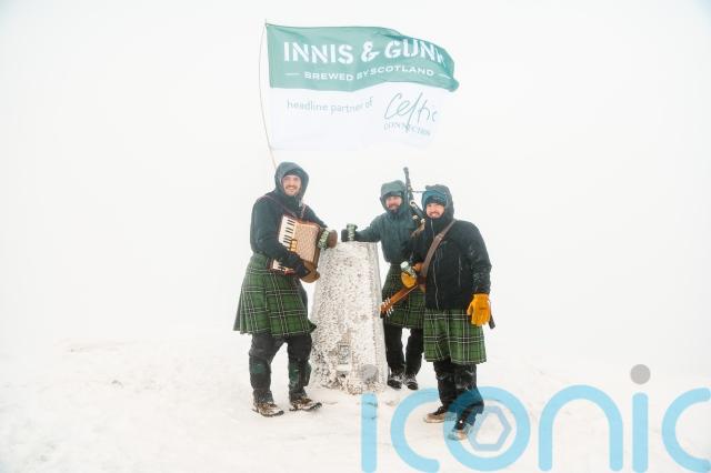 Ewan, Jamie and Lachlan Maclean, from Edinburgh, carried their accordion, bagpipes and guitar 3,196 feet up Ben Lomond, near Loch Lomond on Thursday.