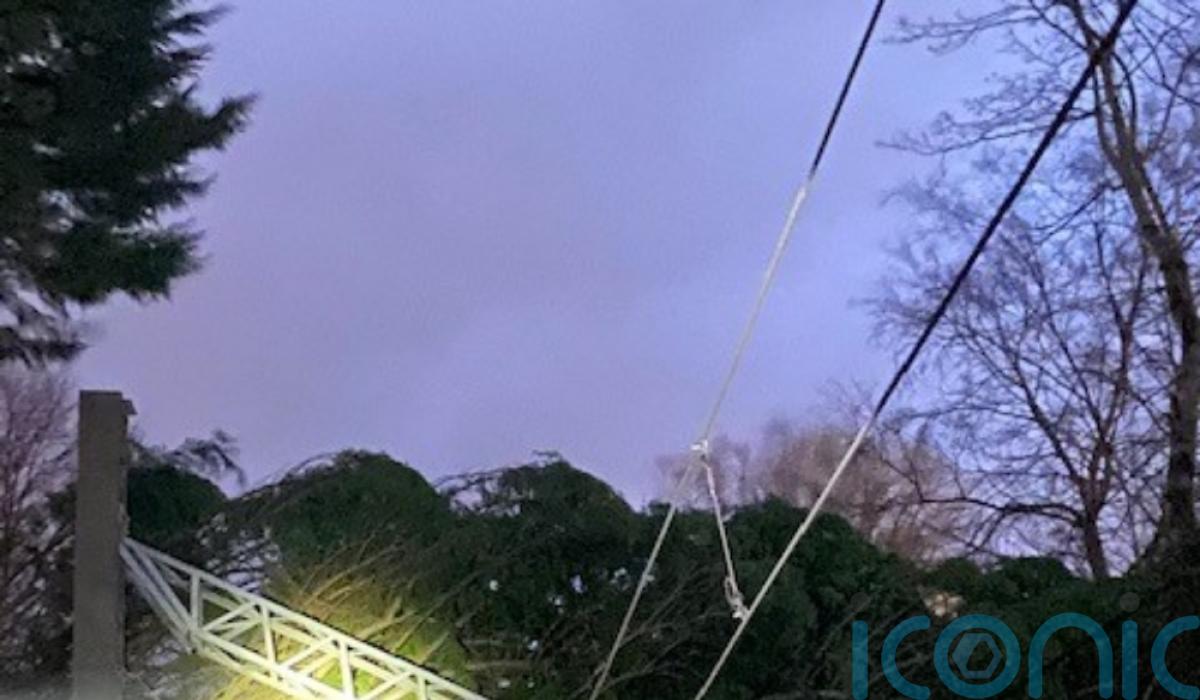 On Twitter, Network Rail Scotland shared photos of a downed overhead power line cased by a falling tree in Kilwinning, North Ayrshire, with a warning that trains in the Glasgow area are unlikely to be able to run between there and Largs and Ardrossan at all on Thursday.
