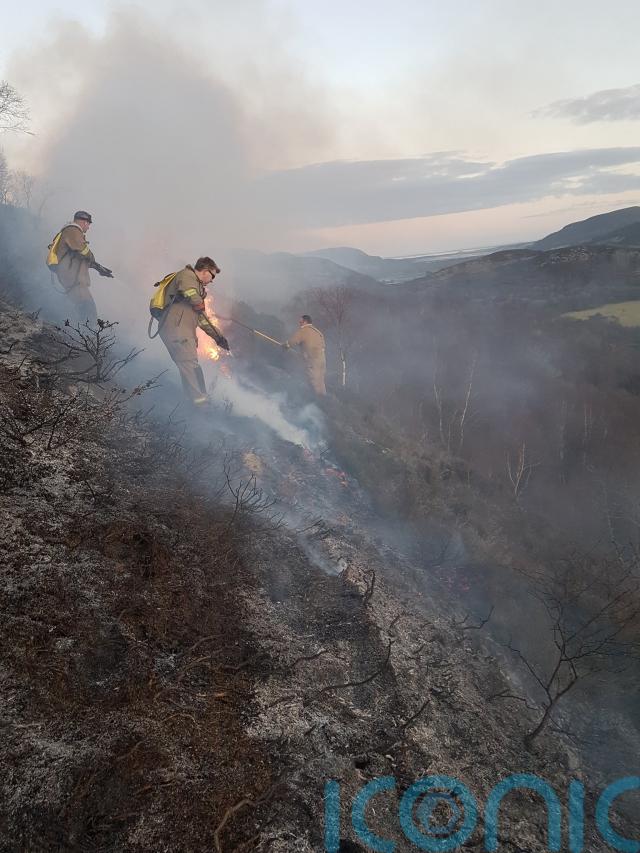 Pictures show firefighters on a steep hillside extinguishing the blaze.