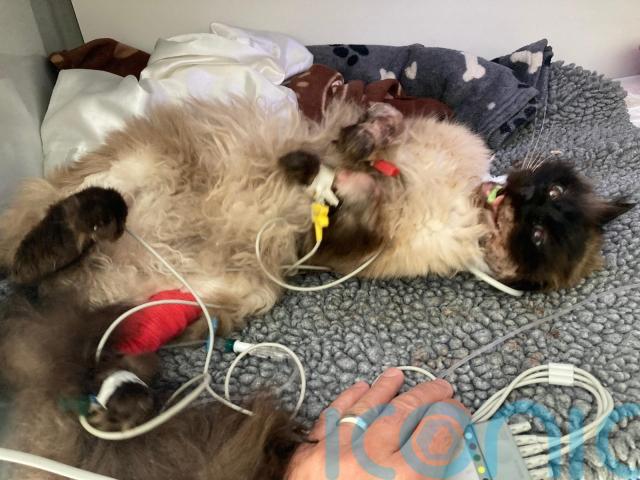 A couple whose cat has repeatedly cheated death after being brutally attacked by four dogs and surviving coronavirus have described him as “the bravest and most expensive cat in the UK” after his medical bills soared to £25,000 and cost them their summer holiday.