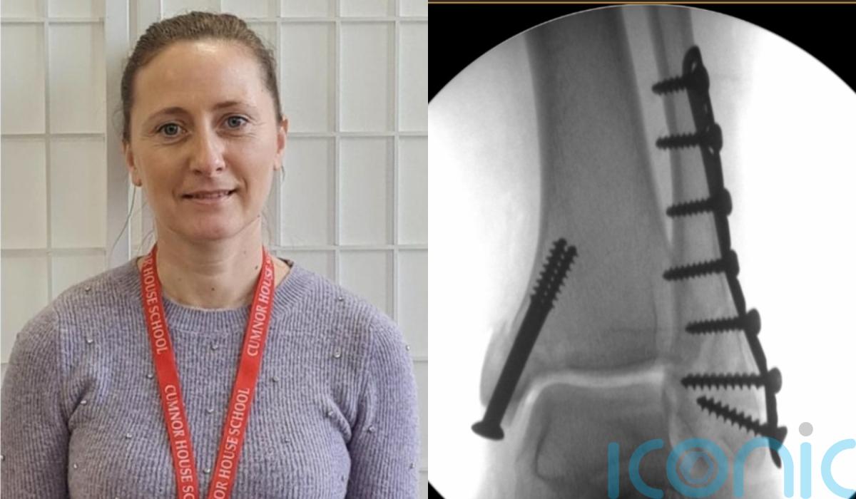 She underwent two rounds of surgery to rebuild her ankle with metal pins and plates before being discharged five days later.