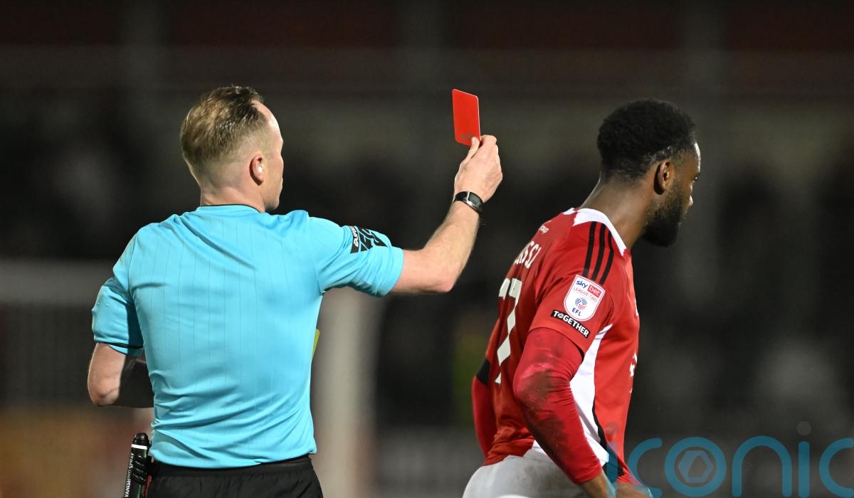 The defender was dismissed in just the eighth minute for bringing down Kyle Hurst and denying a goalscoring opportunity after a mix-up in the home defence.