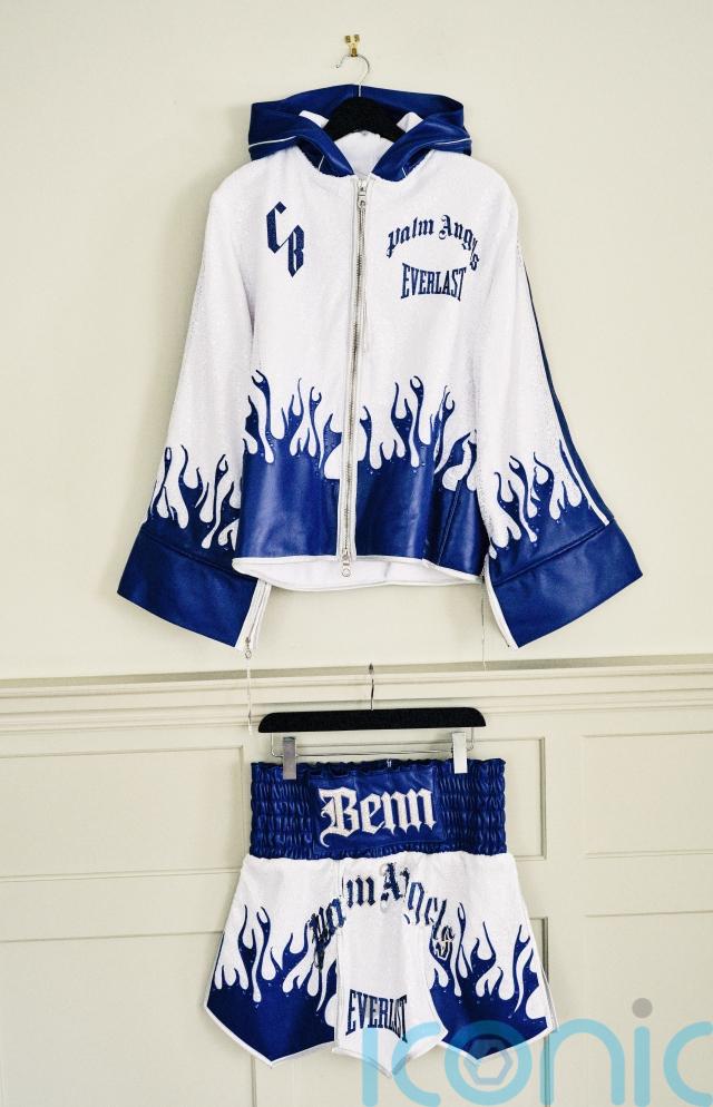 Benn, 29, is among the first boxers to design luxury fight wear, with his ensemble crafted entirely in printed paillettes.