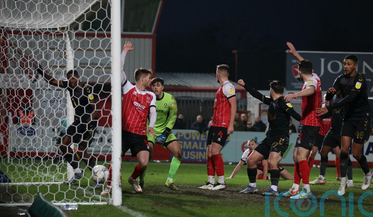 At the other end Inniss saw a header from Elliot Lee’s corner cleared off the line in the 13th minute.